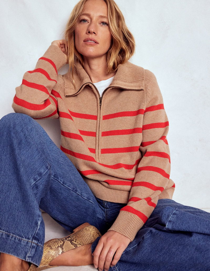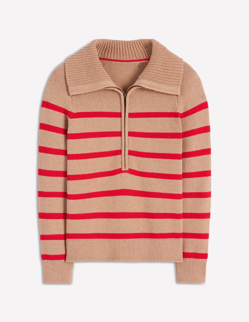 Lucy Half-zip Jumper-Camel Melange, Red Stripe