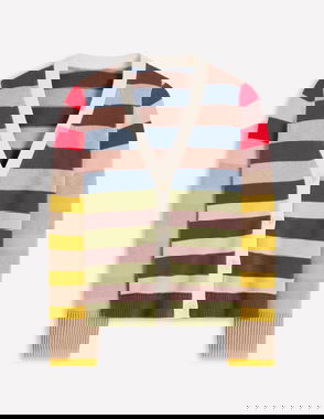 Lucy Stripe Cardigan, Navy/Camel Melange