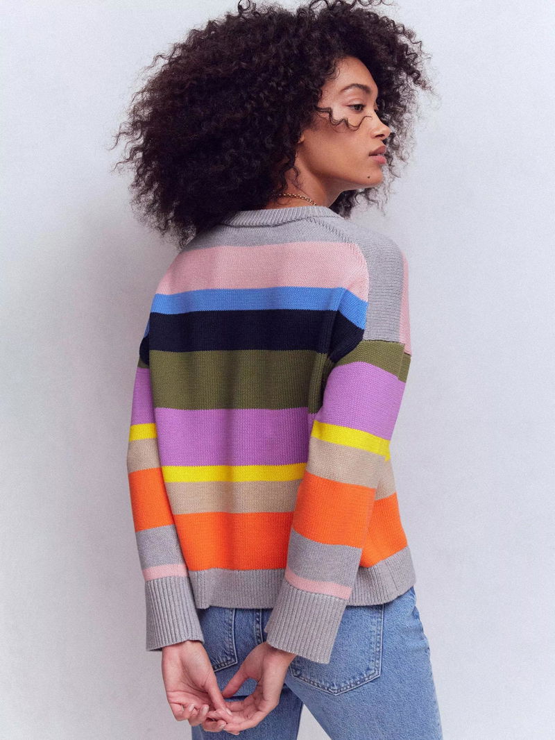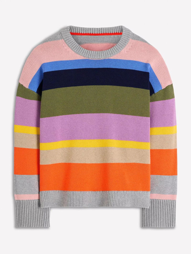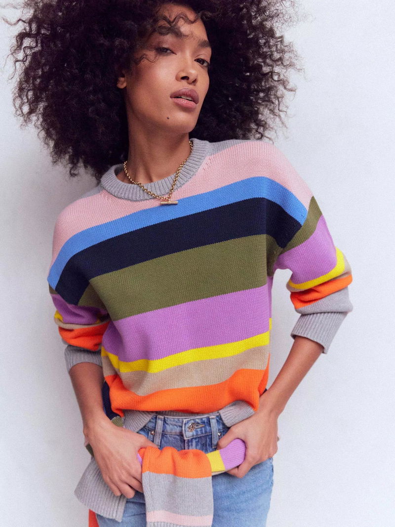Crafted from pure cotton, this lightweight knit adds a subtle style statement to a pair of jeans. With the crew neck, stylish wide sleeves and stripes.