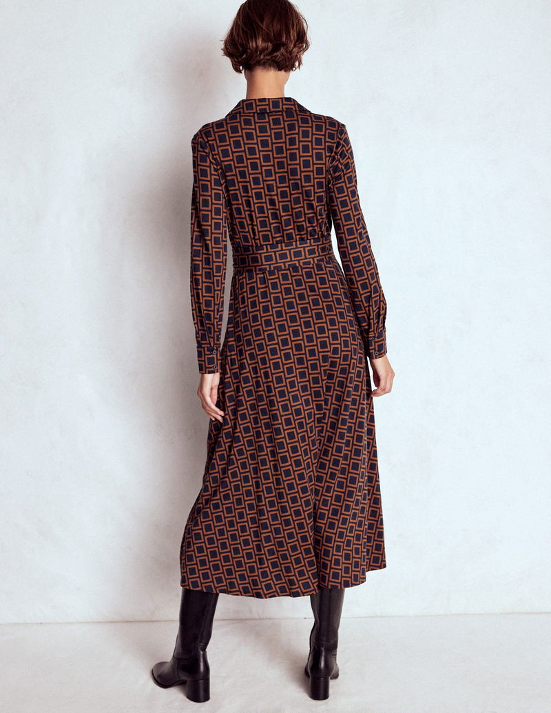 Cut from soft jersey, the Marcia dress is both comfortable and flattering. The classic shirt dress shape and waist-defining belt say you mean business. Choose a different print for every day of the week.