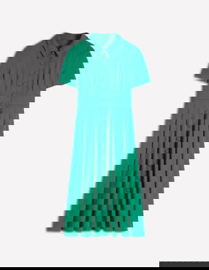Marcia Jersey Shirt Dress-Hunter Green, Painted Dot