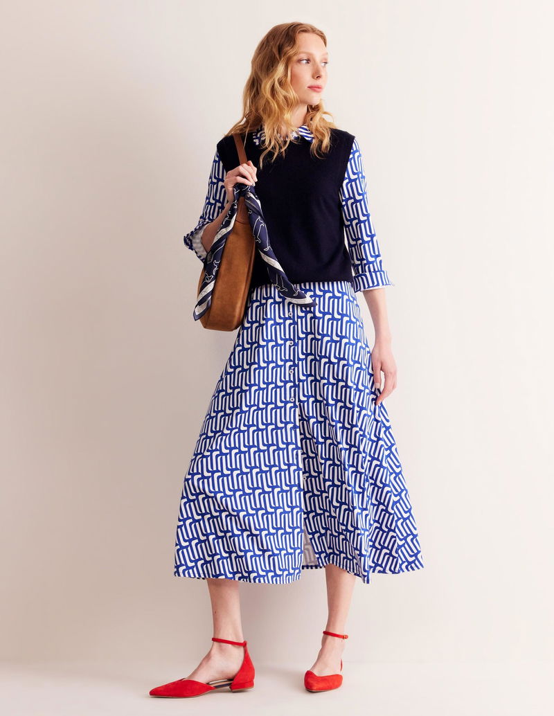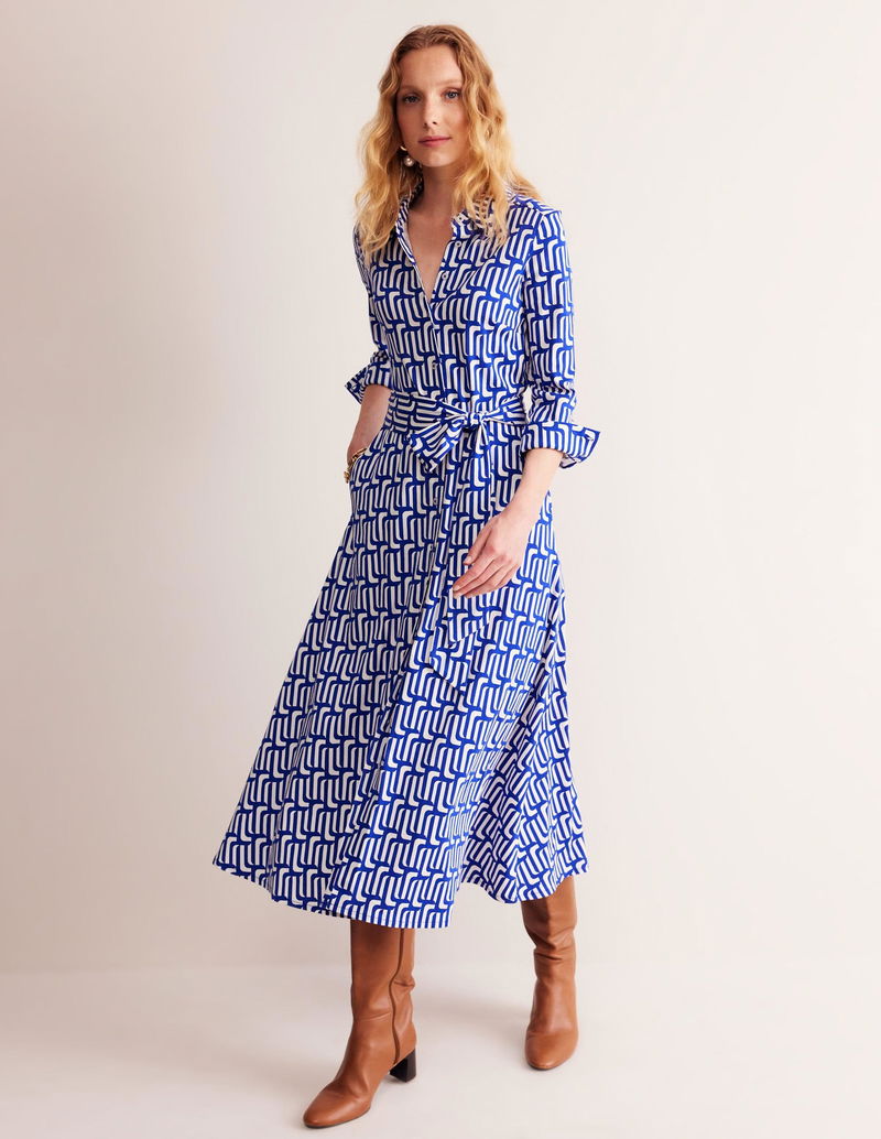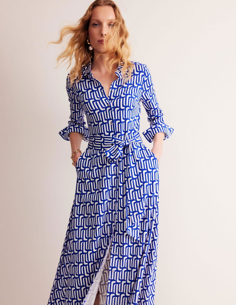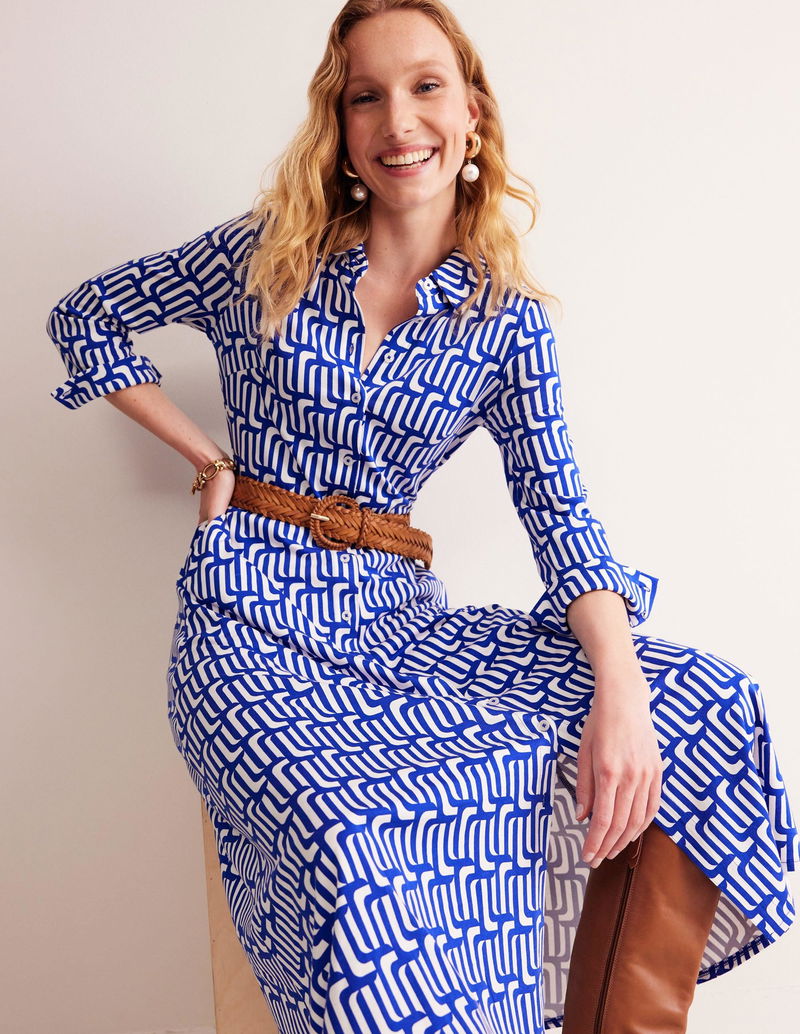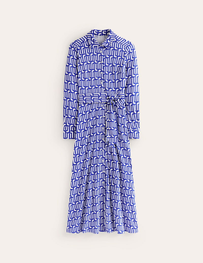 Marcia Jersey Shirt Dress-Sapphire Blue, Falling Geo