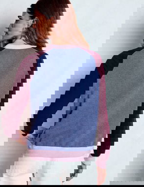 Meg Raglan Sleeve Jumper-Pink, Green Colour Block