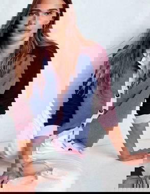 Meg Raglan Sleeve Jumper-Plum Jam, Colour Block