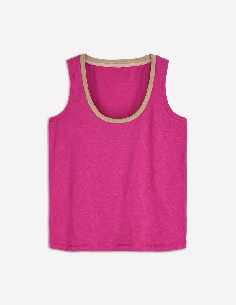 Metallic Trim Scoop Neck Vest-Cosmos Pink