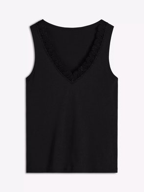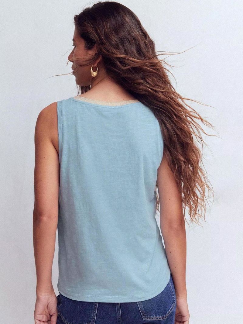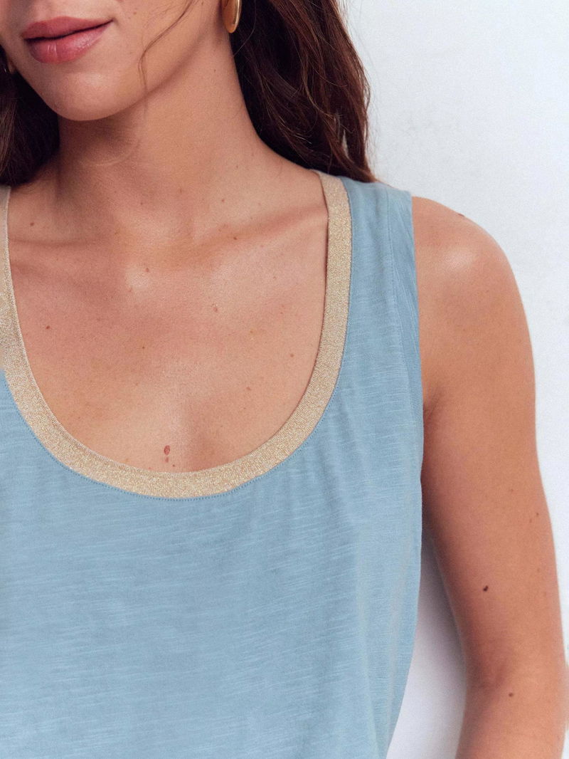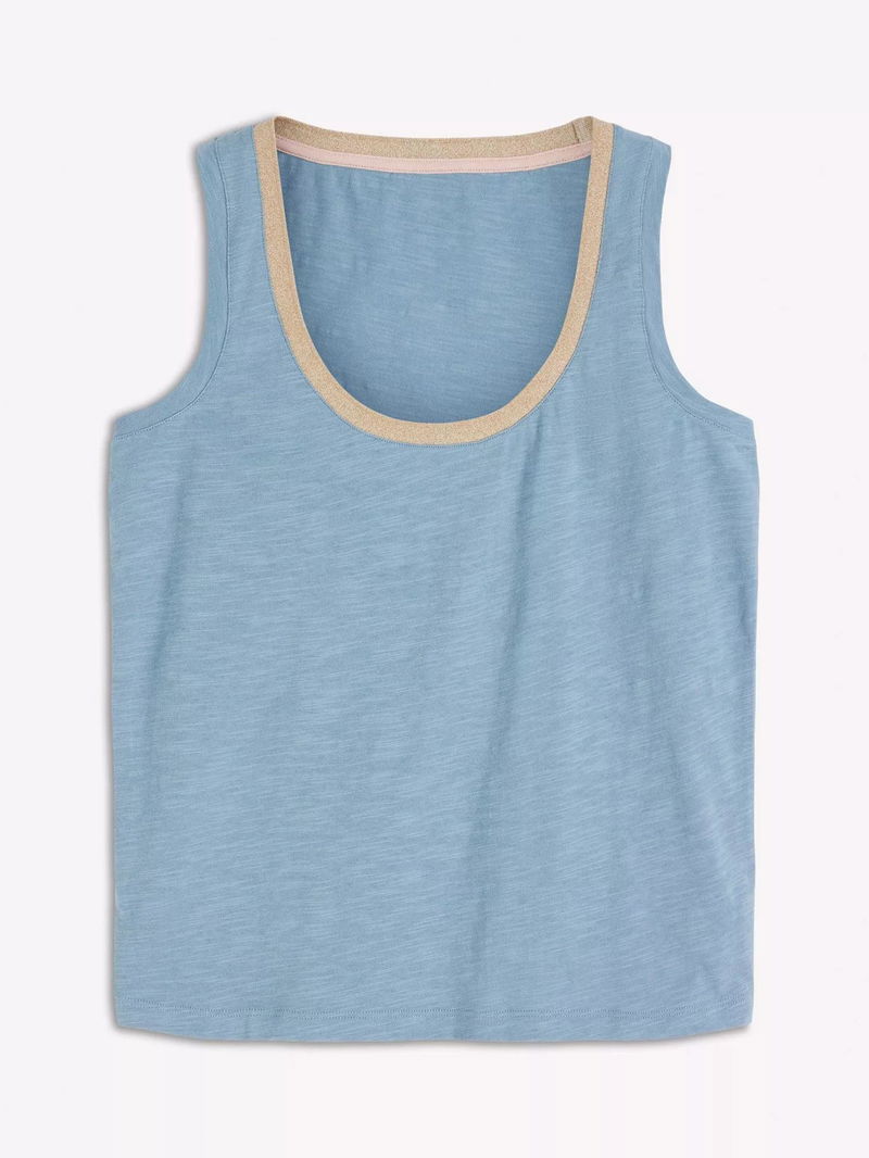 Metallic Trim Scoop Neck Vest Top, Faded Denim