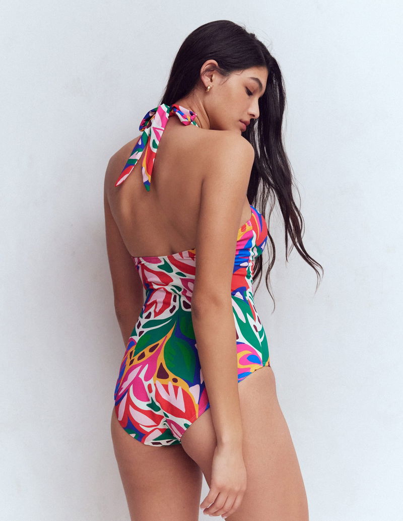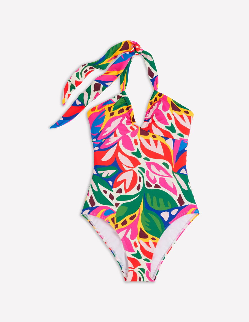 Minori Halter Tie Swimsuit-Multi, Leafy Cascade