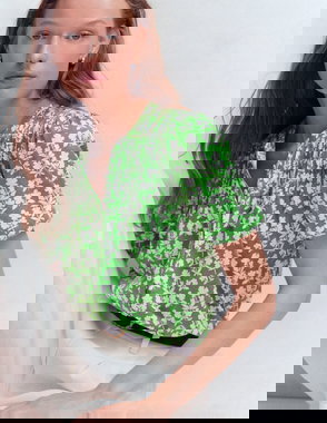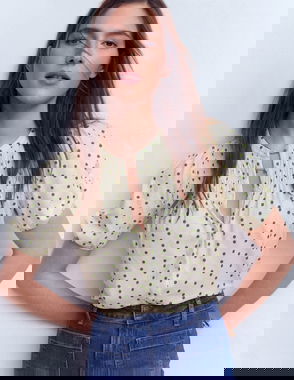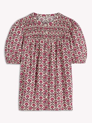Mya Short Sleeve Smocked Shirt-True Navy, Dainty Blooms