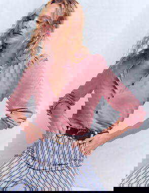 Mya Smocked Jersey Shirt-Clover Purple And Ivory Stripe