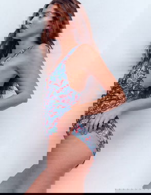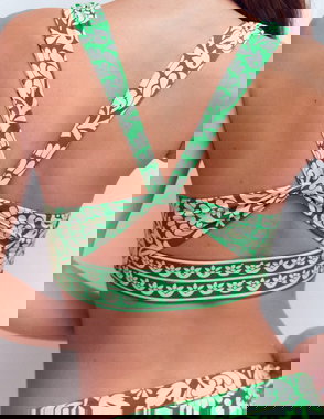 Mykonos Deep V Bikini Top-Dark Green, Ocean Blossom