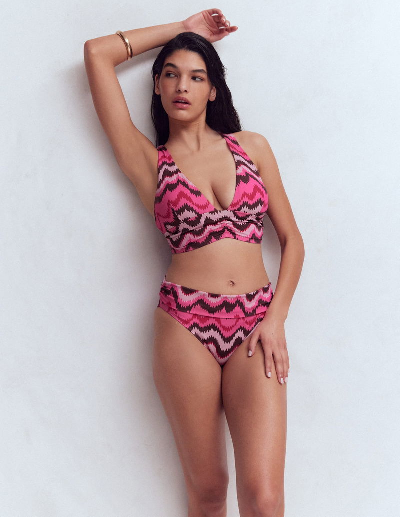 Mykonos Deep V Bikini Top-Pink, Zig Zag Wave