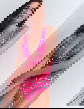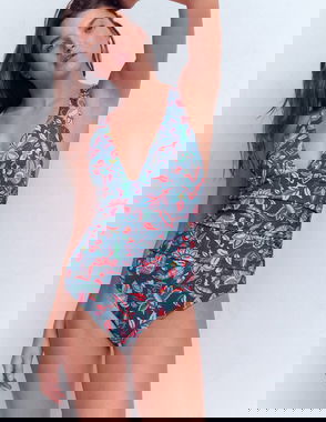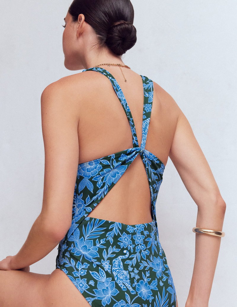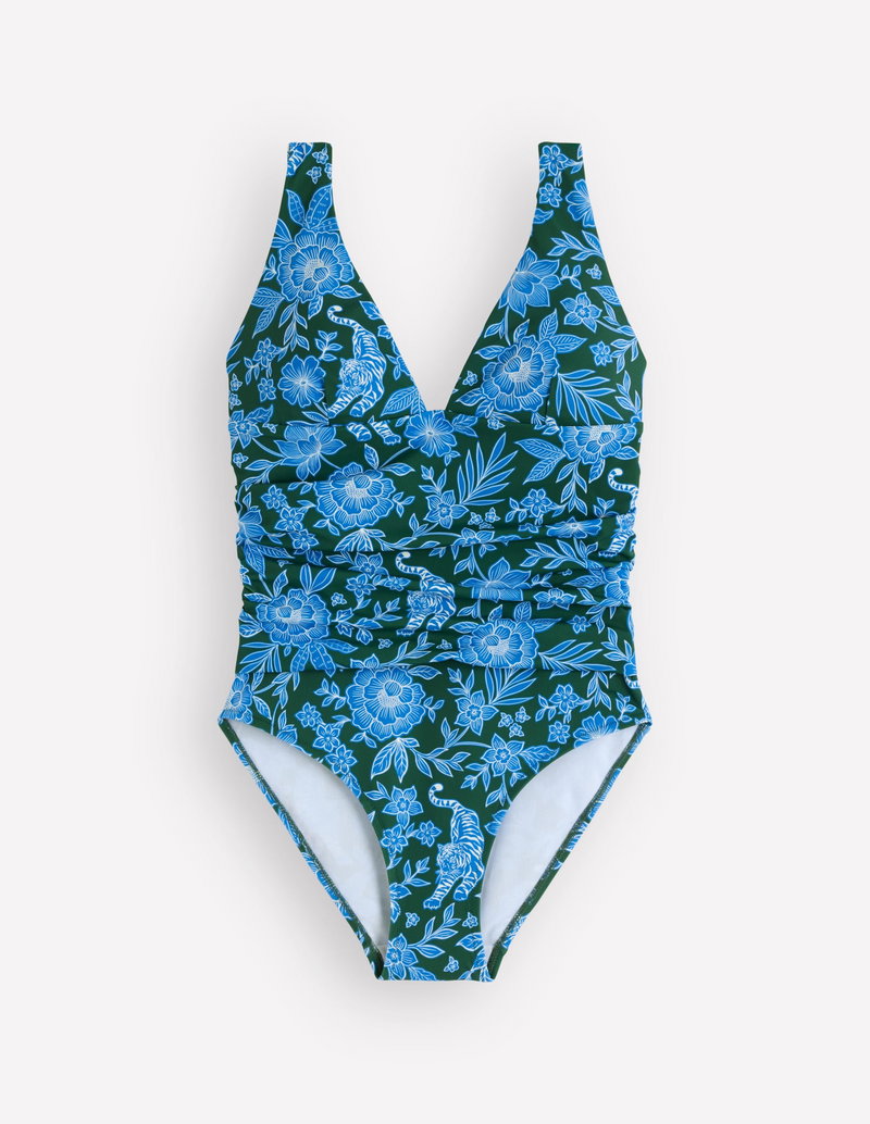 Mykonos Deep V Swimsuit-Dark Green, Tigers Paradise