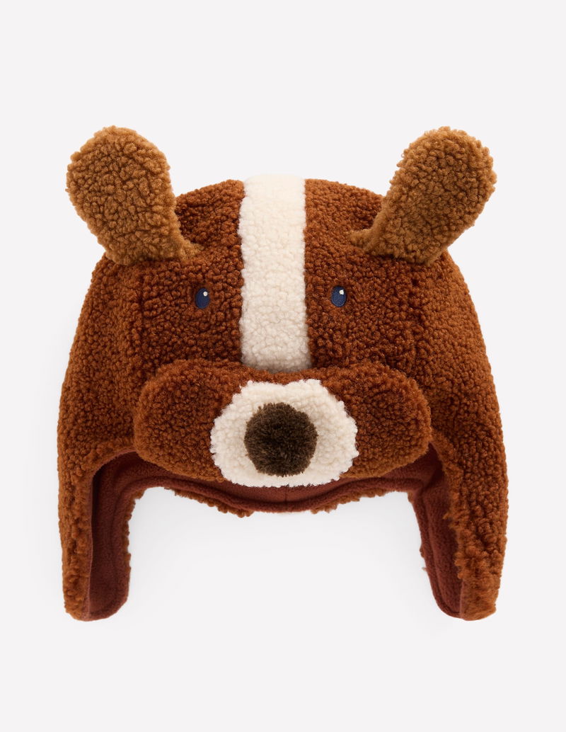 Little pups will love this fun trapper hat with its floppy ears and embroidered details. It’s made with a strokably soft borg and combed cotton that’s su-paw cosy.