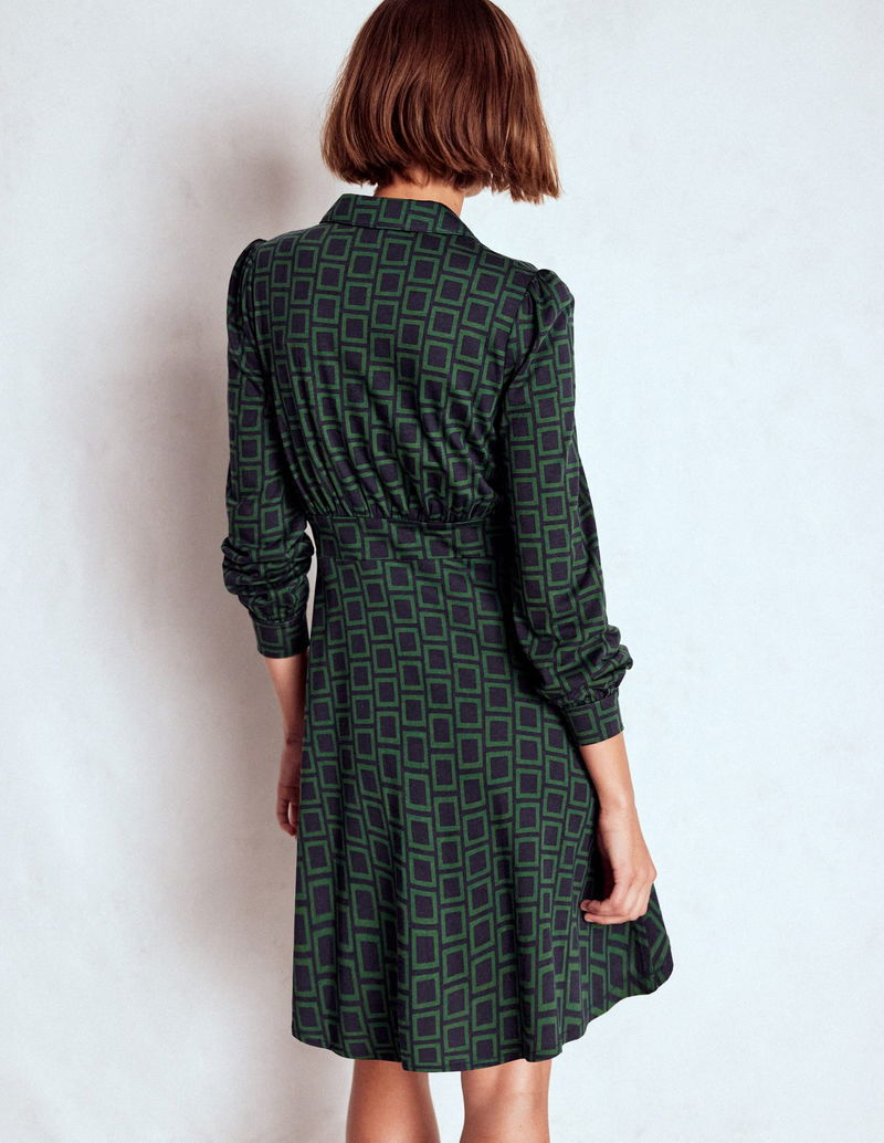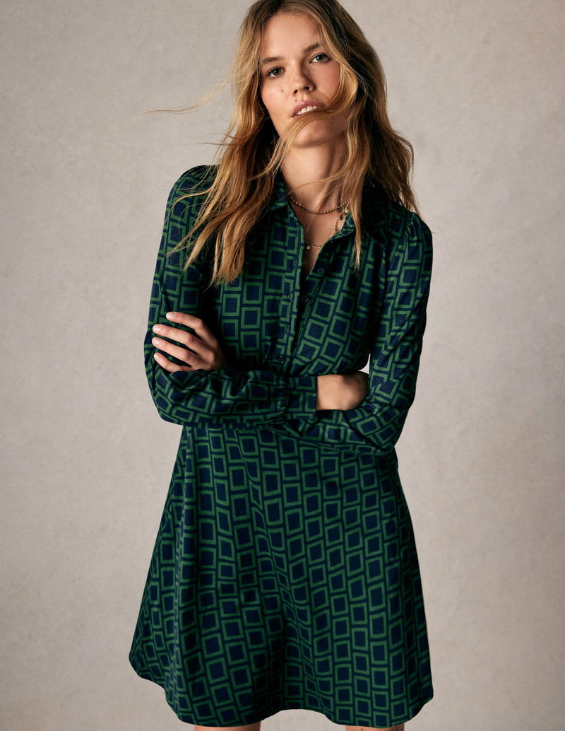 Orla Short Jersey Shirt Dress-Dark Green, Square Geometric