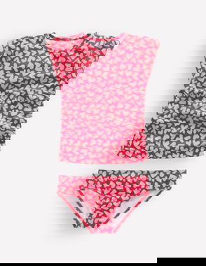 Peplum Smocked Swimsuit-Rockabilly Red Collage Hearts