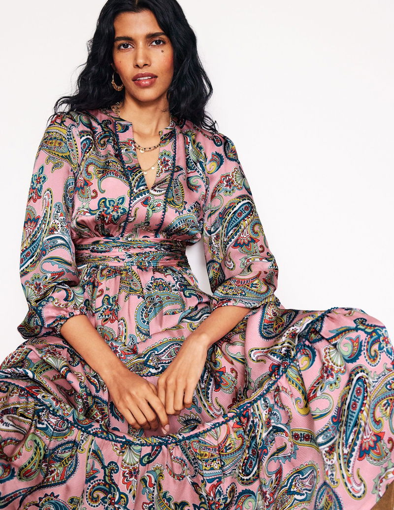 Pippa Satin Maxi Dress-Charm Pink, Opulent Paisley