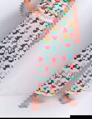 Pleat Jeans-Ivory Sunflower Garden