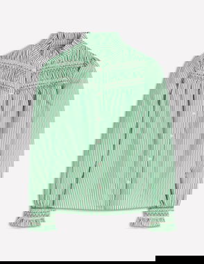 Pleat Sleeve Stripe Top-Jewel Green And Ivory Stripe