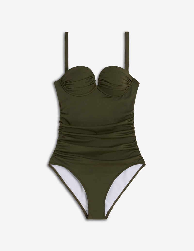 Pleated Cup Swimsuit-Olive