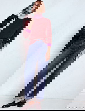 Polly Merino Roll Neck Jumper-Navy, Warm Taupe Colour Block