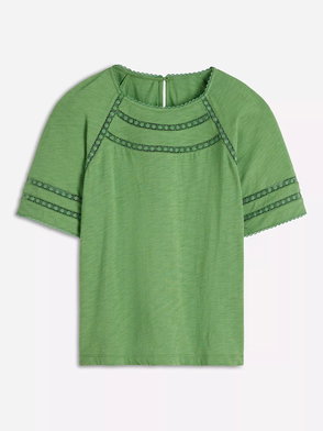 Floaty sleeves, lace trim and pure cotton fabric are all signs warmer weather is on its way. We're calling this days-getting-longer hope in T-shirt form with a retro twist.