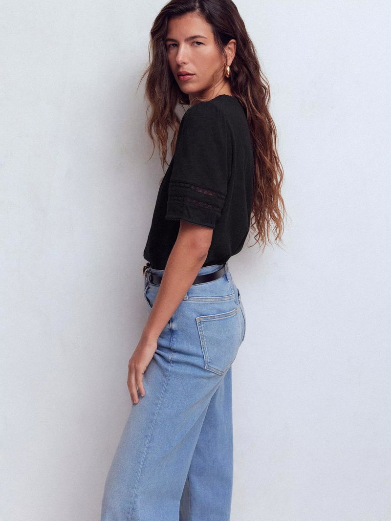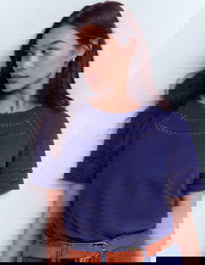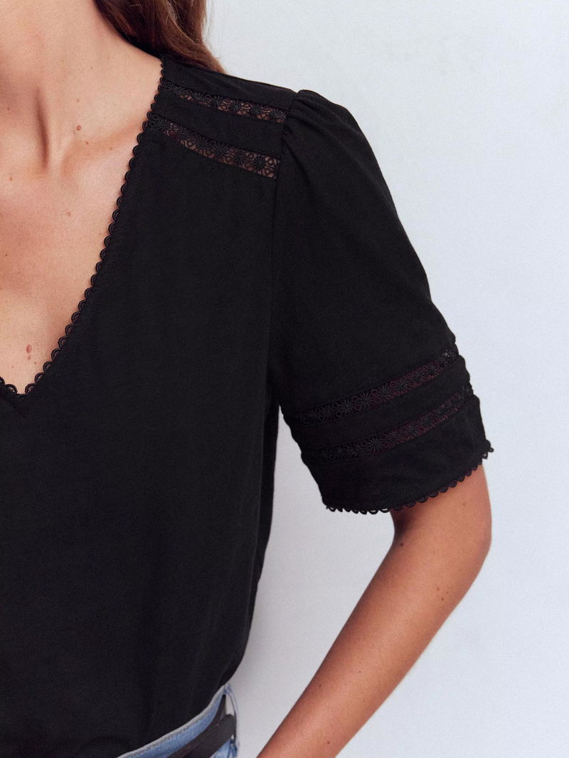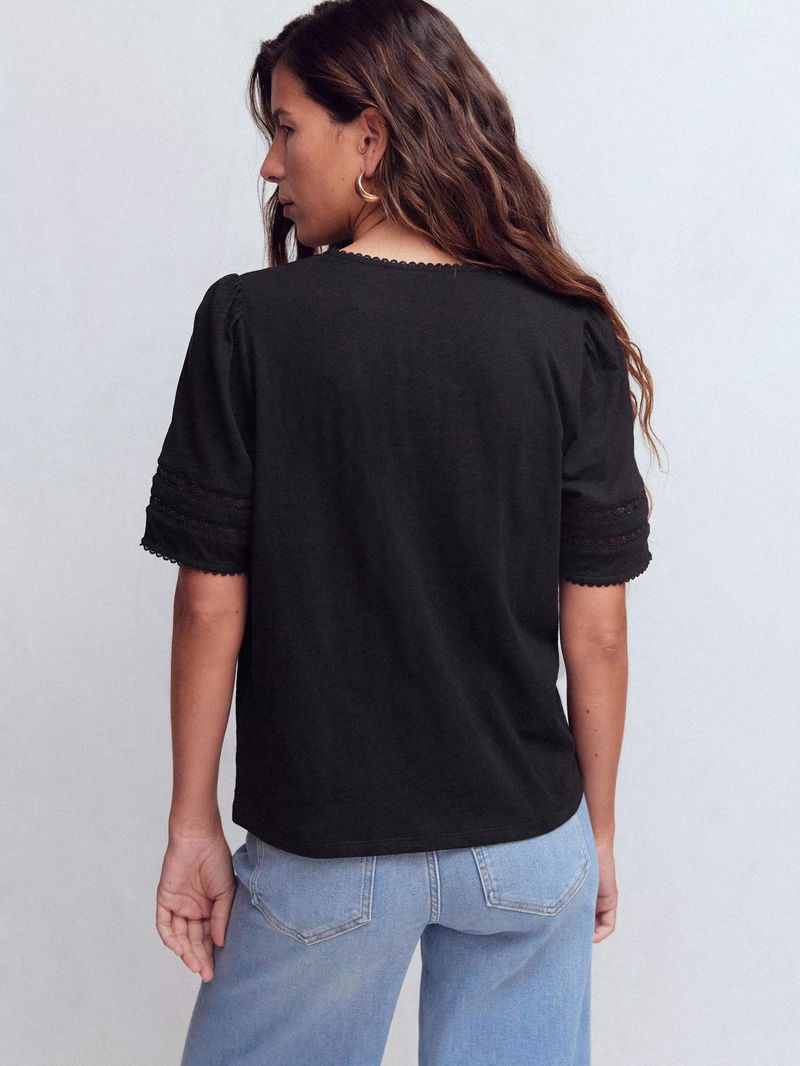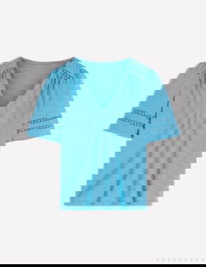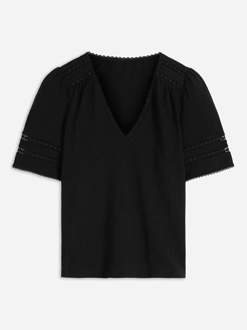 A classic tee with plenty of personality: It's spun from pure lightweight cotton, has a deep V-neck and hints of lace and picot trim to finish. It's perfectly packable for holidays too.