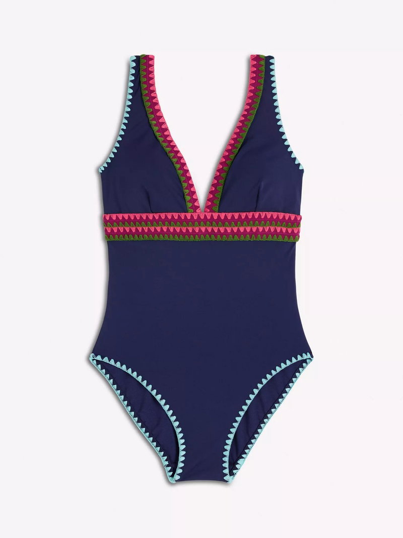 The Porto swimsuit is back with its signature deep set V-neck, contrast panelling and low back.