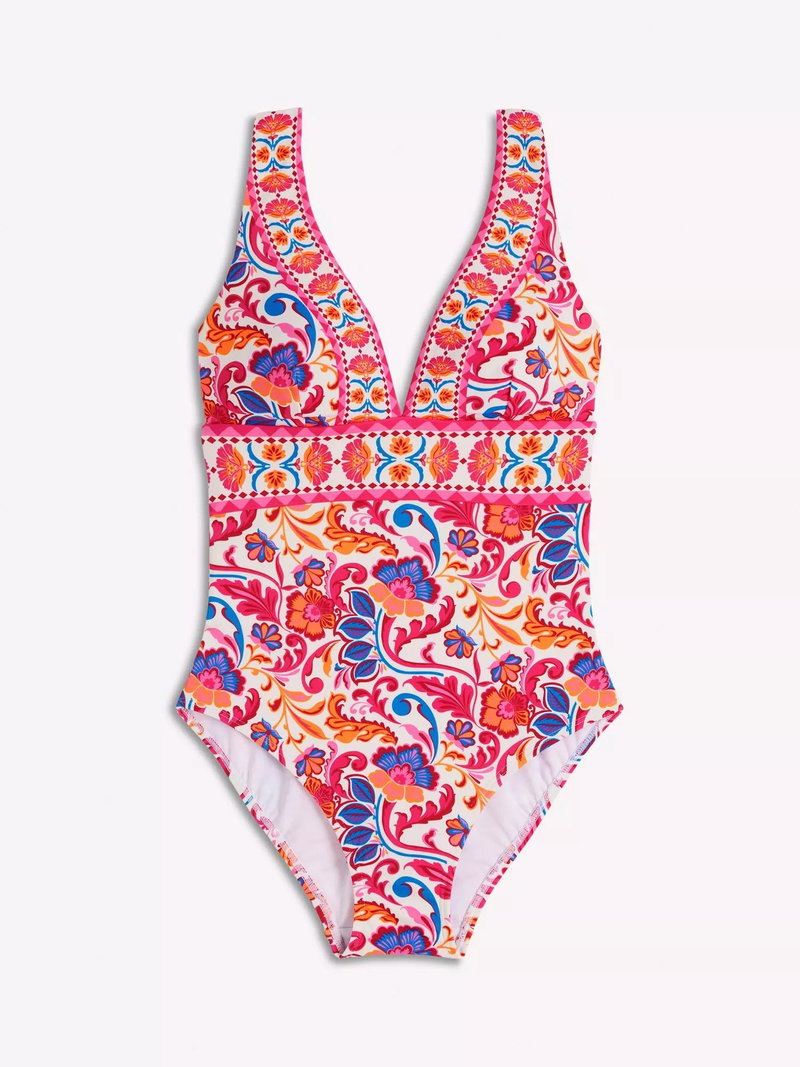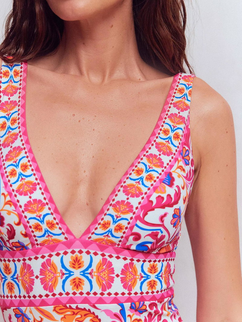 The Porto swimsuit is back with its signature deep set V-neck, contrast panelling and low back.