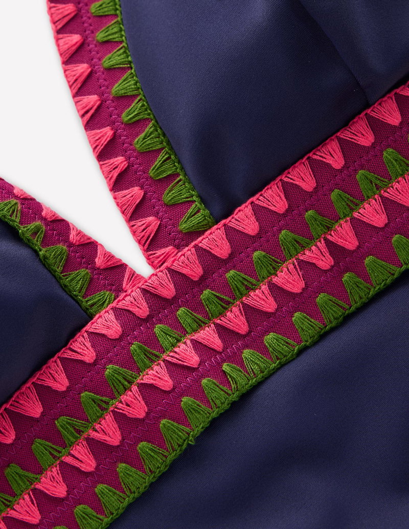 Porto V-neck Swimsuit-Navy, Embroidery