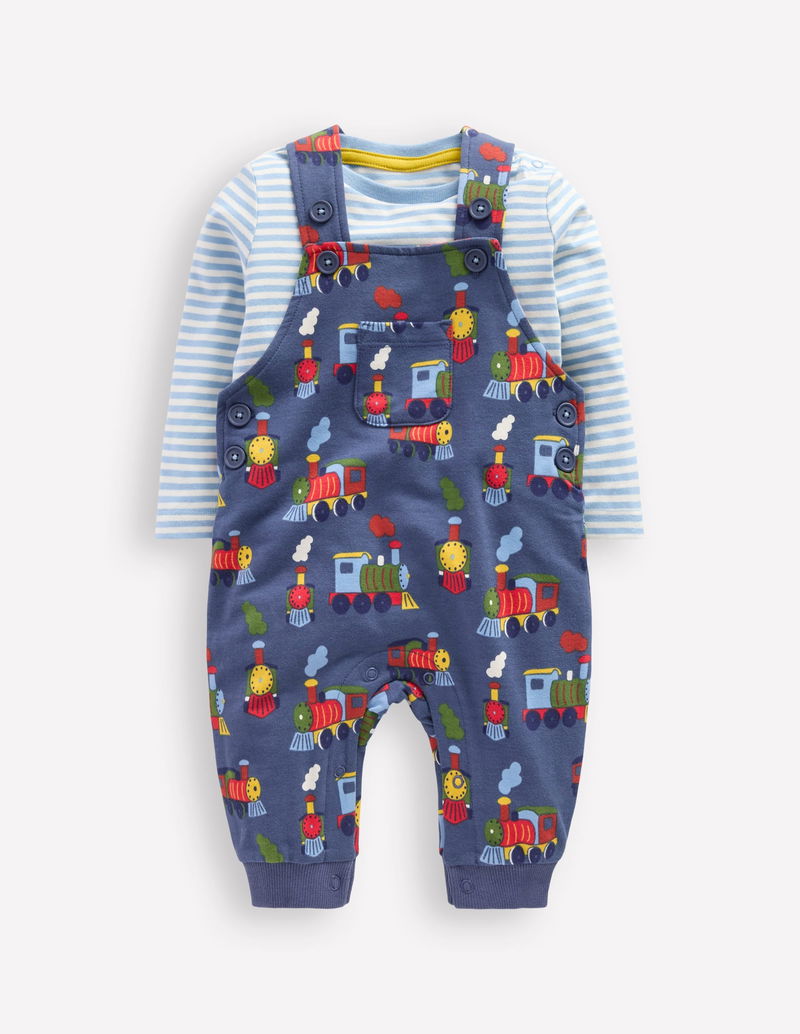 This dungaree and T-shirt set is perfect for little ones beginning to crawl. With adjustable straps and easy poppers, you can ensure a snug fit and handle quick changes. Plus, you can never go wrong with trains.