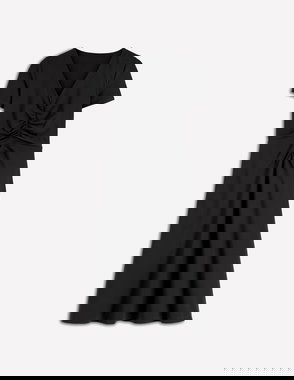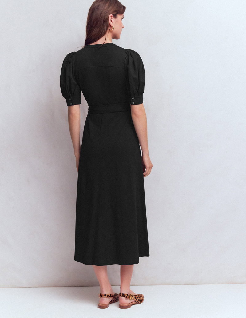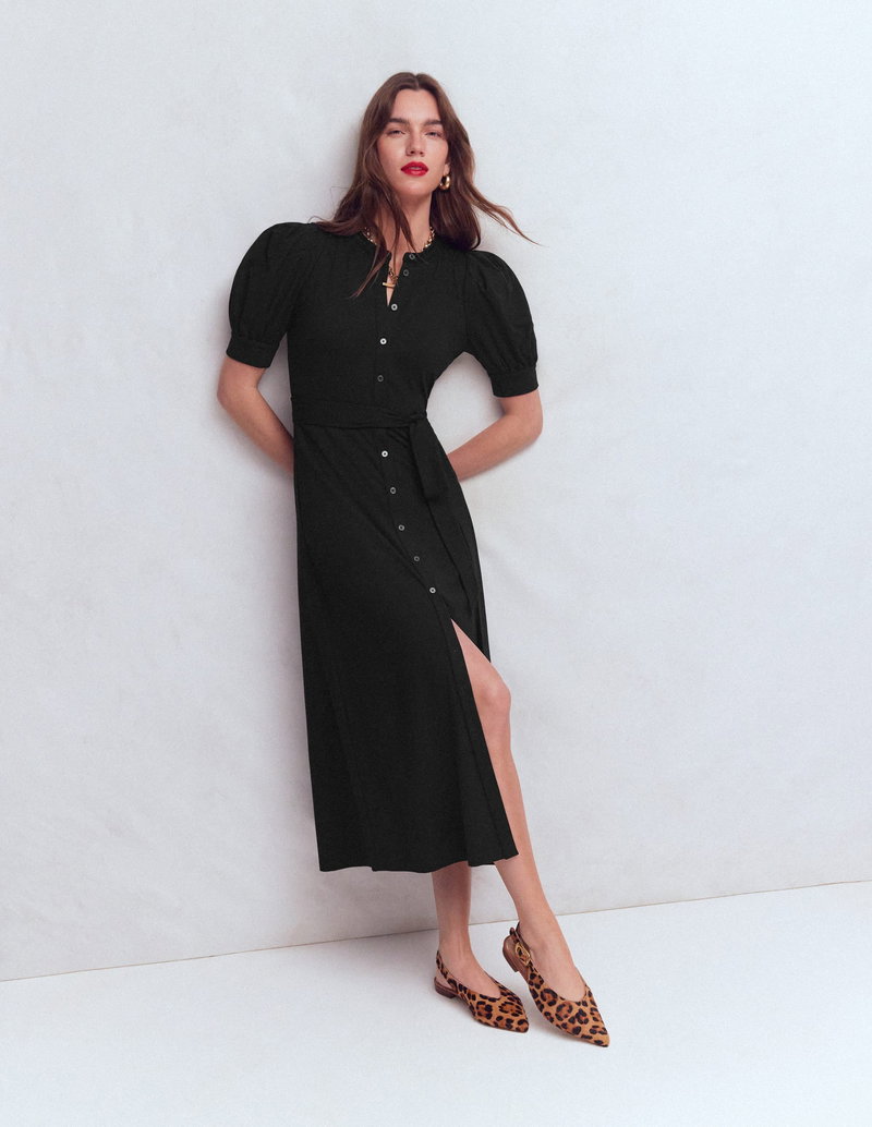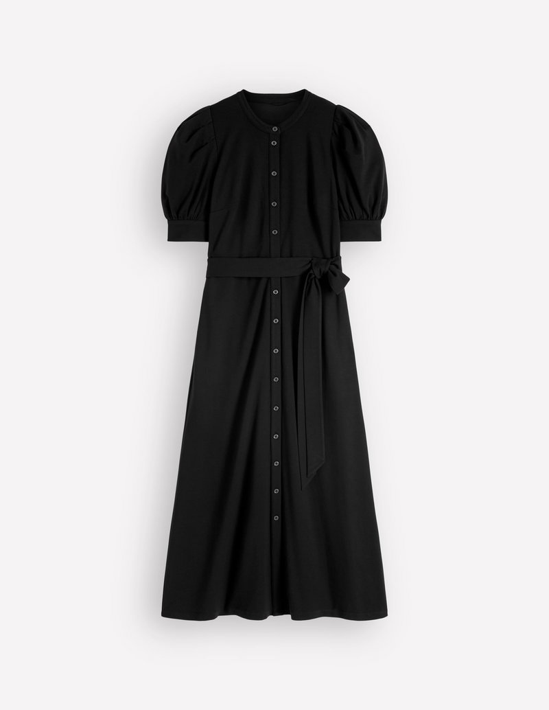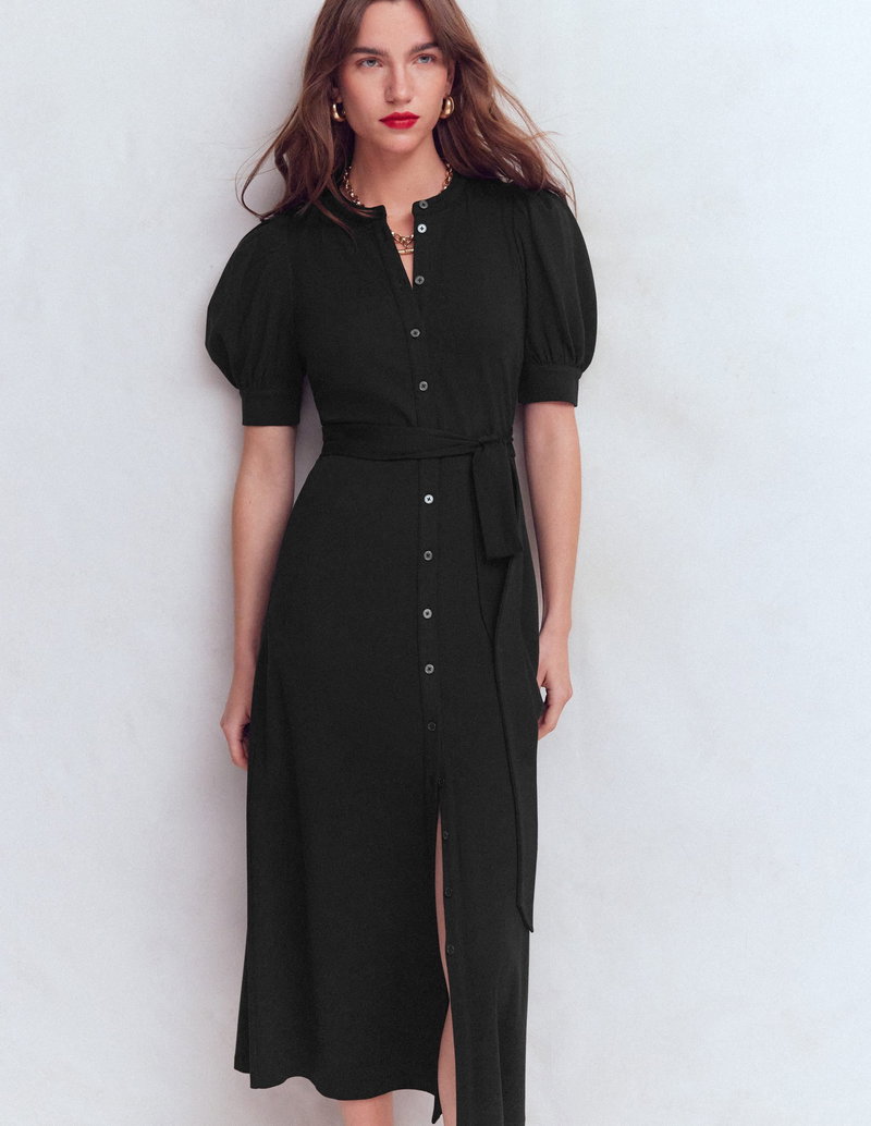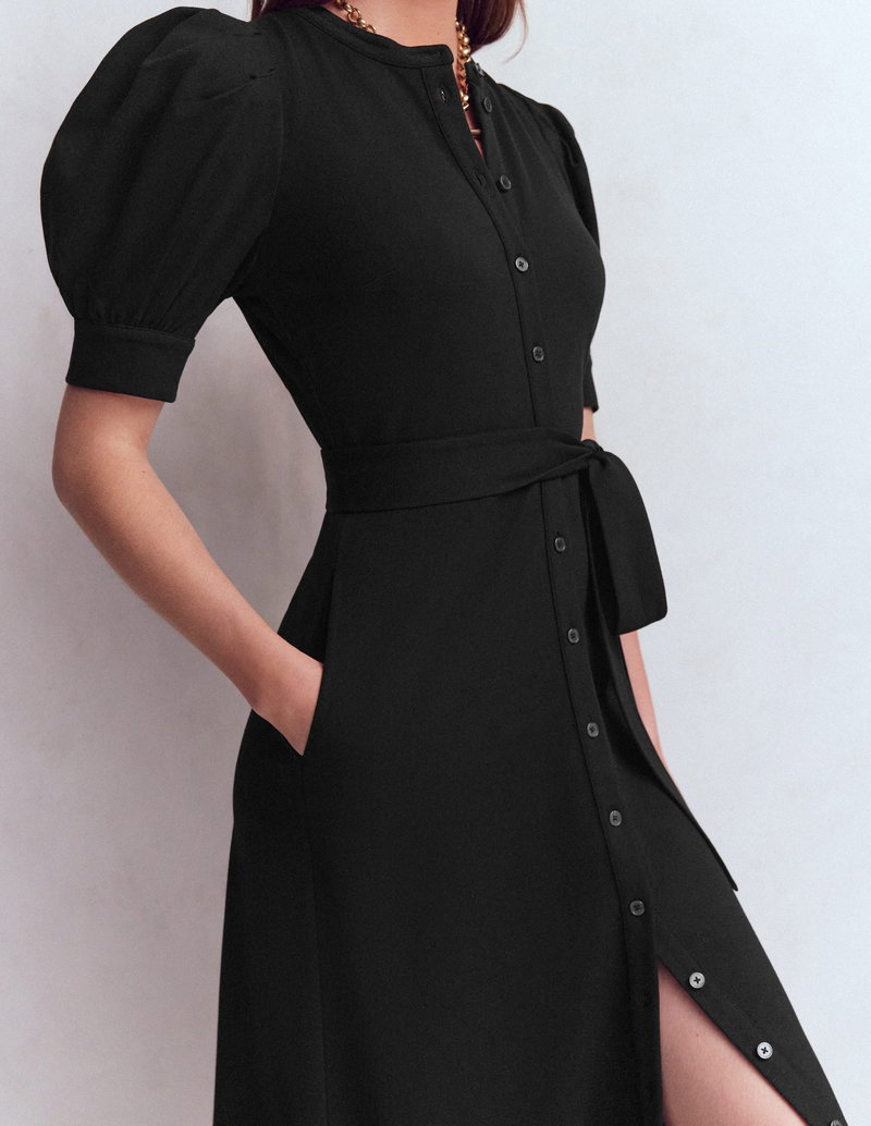 Puff Sleeve Ponte Shirt Dress-Black