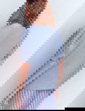 Made with at least 50% linen. Linen is made from the fibres of the flax plant. Flax is resilient and can grow in poor soil, using less water than cotton to produce.'