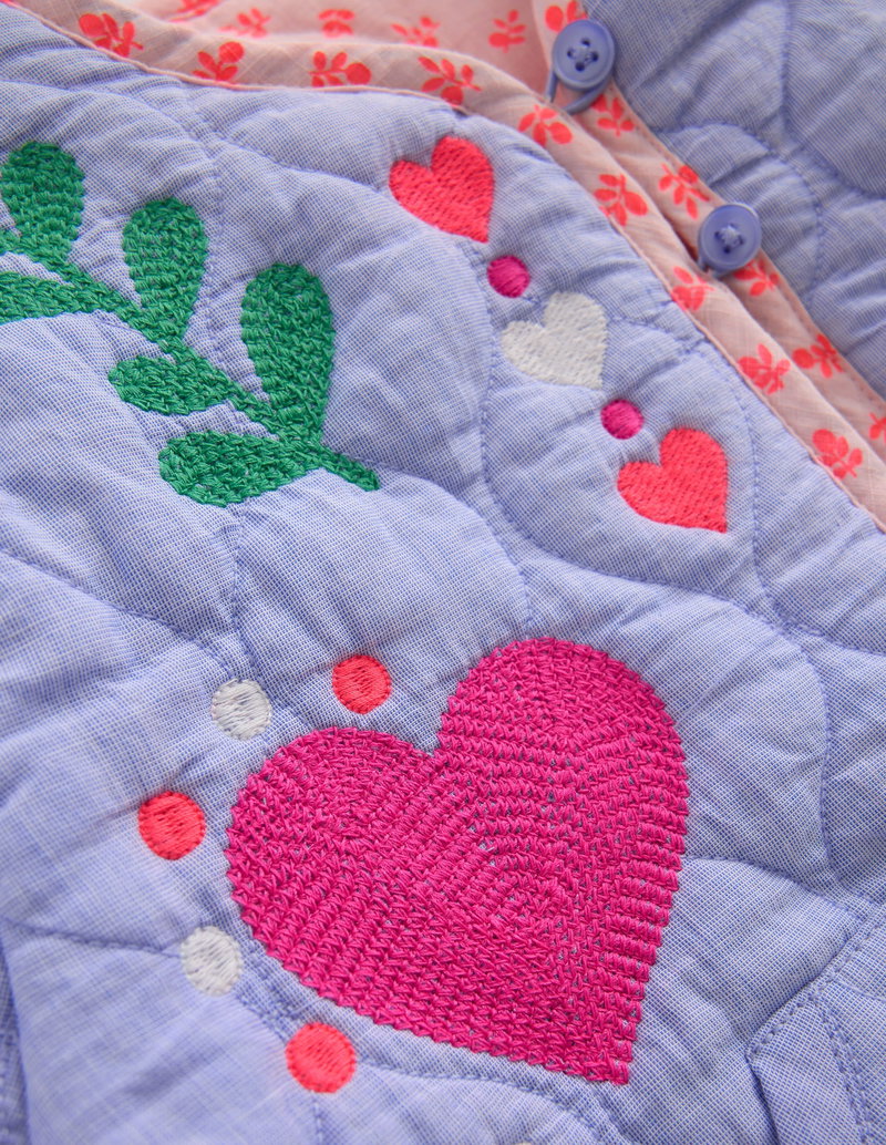 Reversible Quilted Jacket-Blue Embroidery