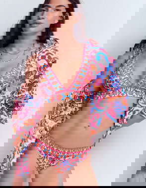 Rhodes Cup-Size Bikini Top-Pink, Euphoric Gardens