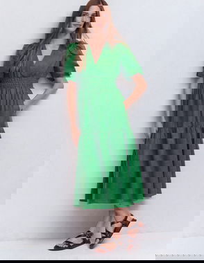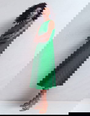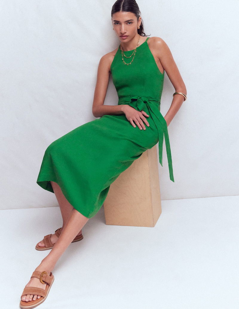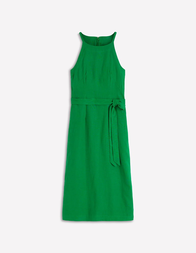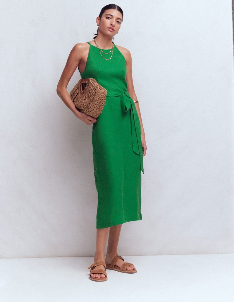 Rosa Halter Linen Midi Dress-Amazon Green