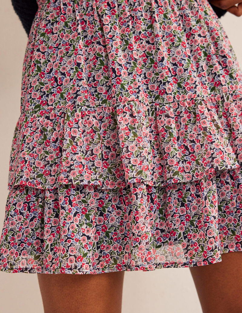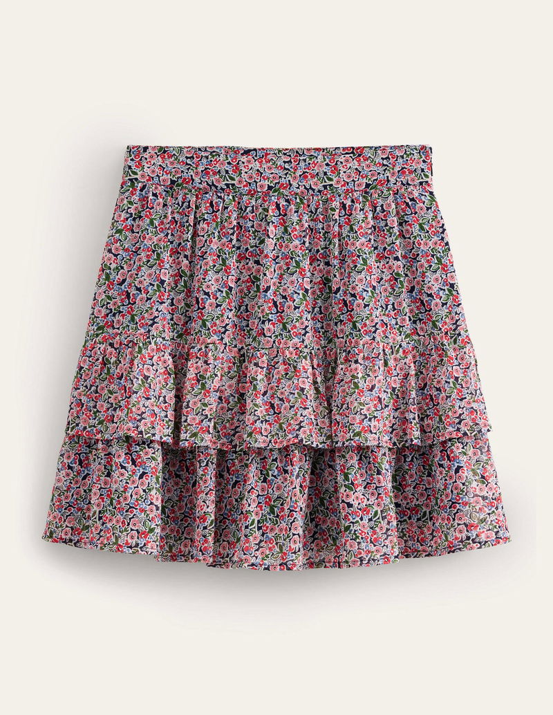Delicate tiered ruffles give this skirt its distinctive voluminous shape. Dress it up or down to suit the occasion—it's just as good with knitwear, tees, and sweatshirts.