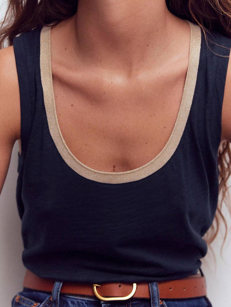 A summer capsule wardrobe starts with a good quality vest. Boden have given this style some pizazz with a scoop neck, metallic trim and plenty eye-catching colours. It'll still go with everything, including bright, sunny days.