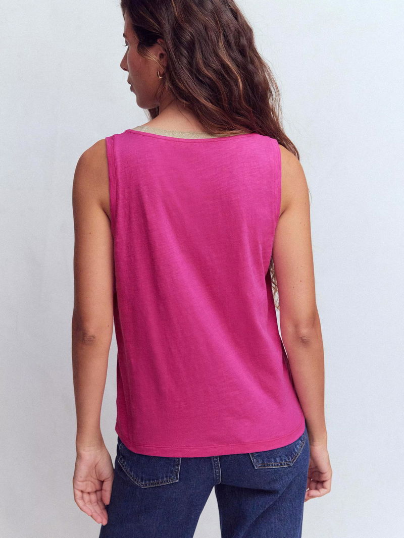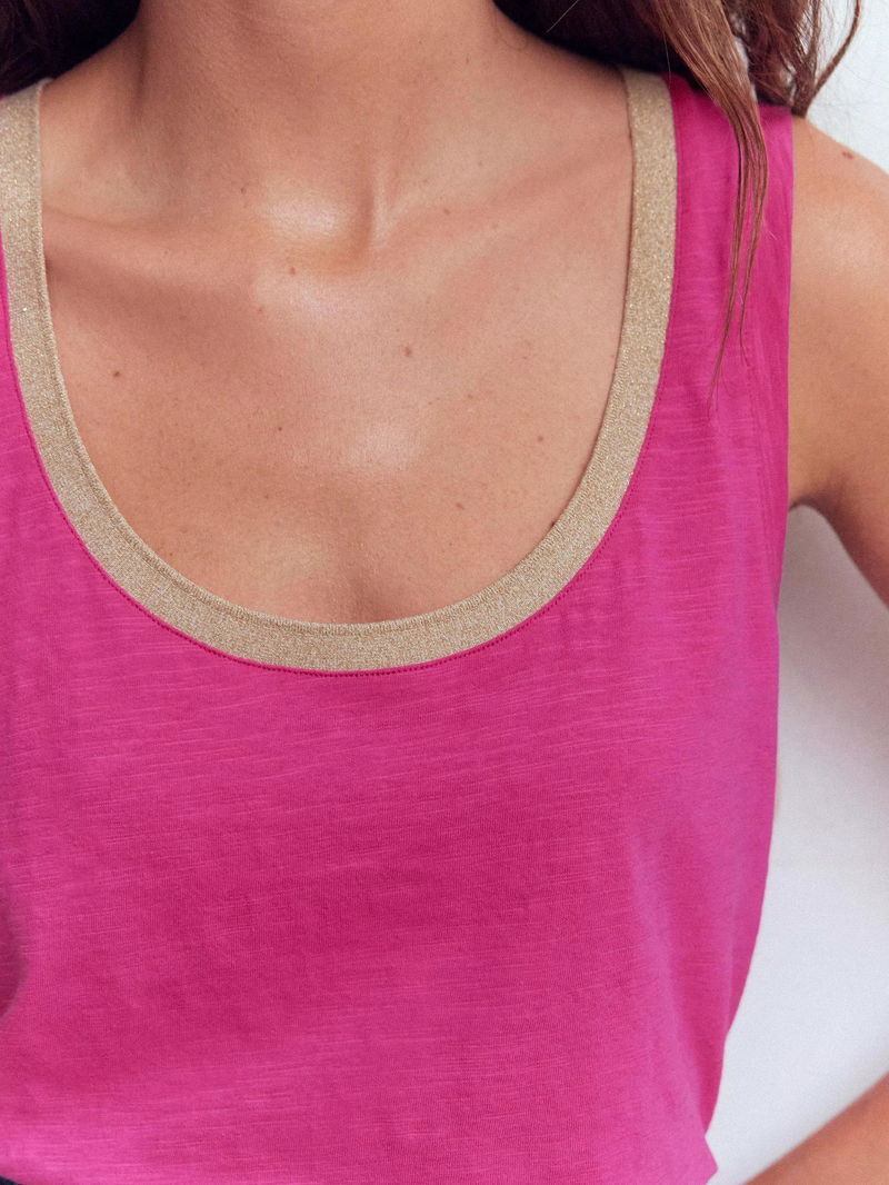 Scoop Neck Metallic Trim Vest Top