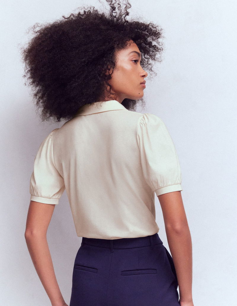 Short Sleeve Zip Collar Top-Ivory