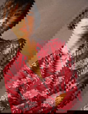Sienna Floral Pure Silk Shirt, Red/Multi