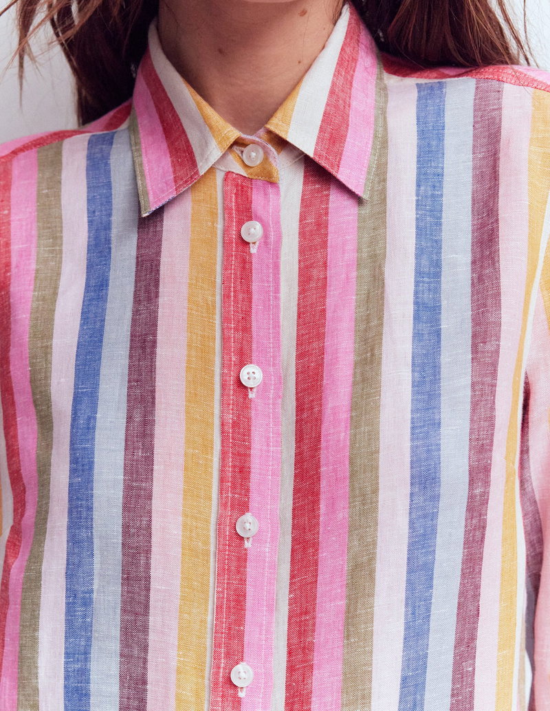 Sienna Linen Shirt-Pink, Green, Purple Multi