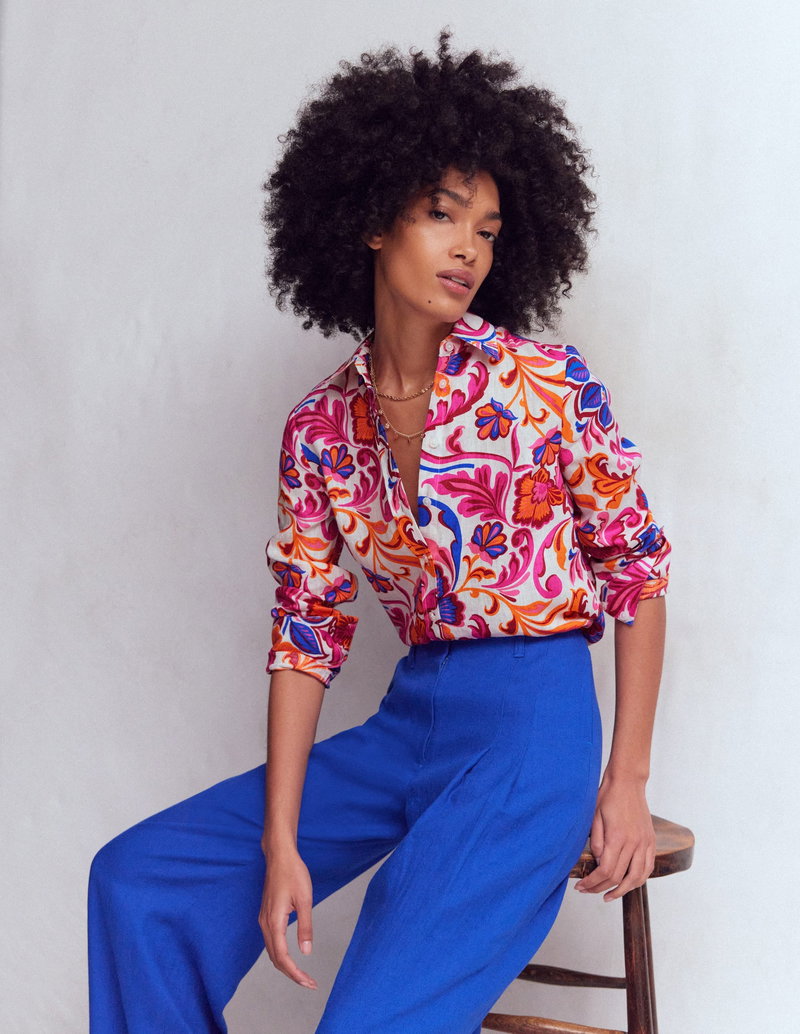 Sienna Linen Shirt-Pink Punch, Flourishing Meadow