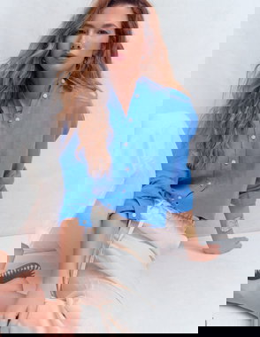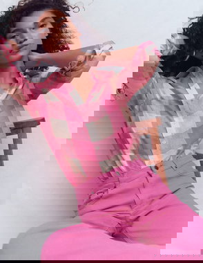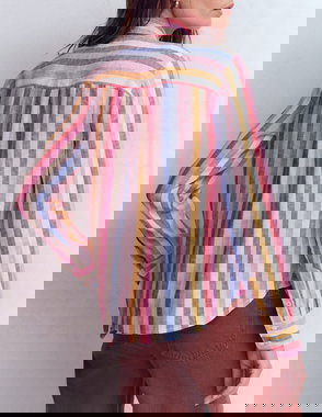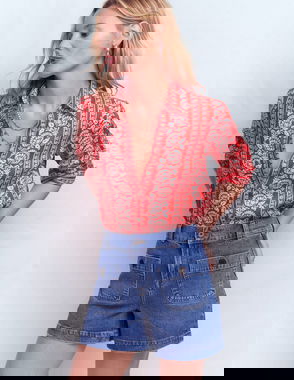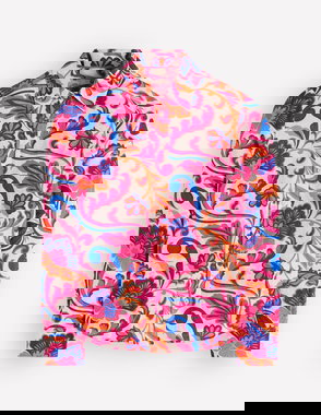 Sienna Linen Shirt-Pink Punch, Zig Zag Wave
