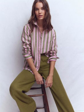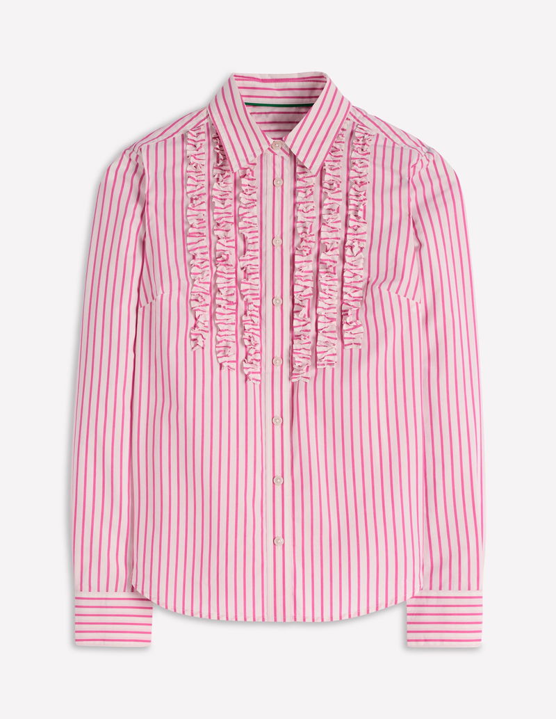 Sienna Trim Detail Shirt-Ivory, Pink Stripe