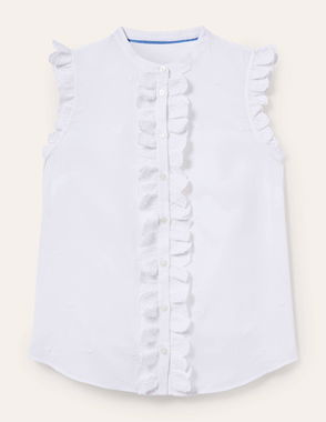 A versatile sleeveless cotton top to wear with your favourite pair of jeans or a pair of tailored shorts. There's broderie trim in all the right places for a nice delicate touch and the scalloped hem adds a boho-chic coolness.