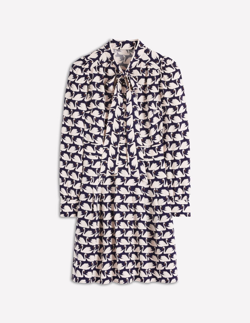 Tie Neck Short Dress-French Navy, Geo Swan
