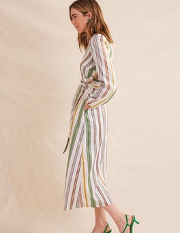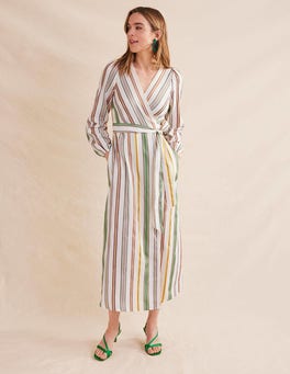 The classic wrap dress is always an elegant choice and this cotton-blend maxi style is no exception. It’s enhanced with rainbow stripes and a waist tie for a shape-defining finish.
