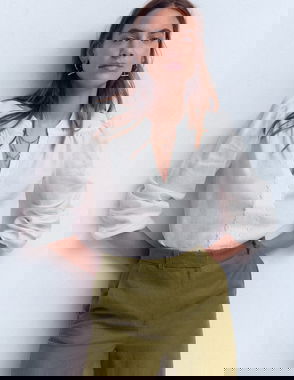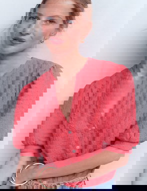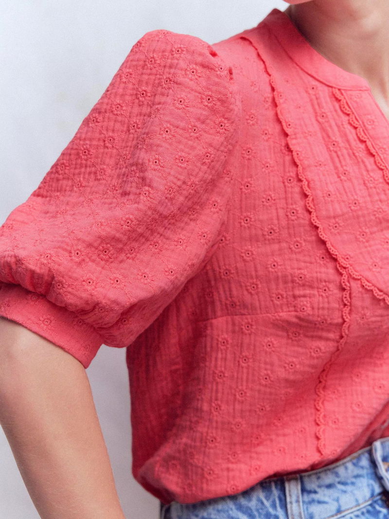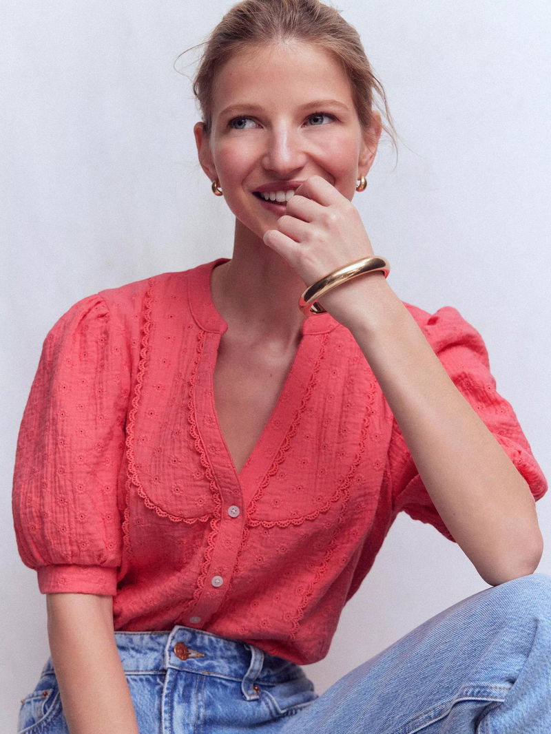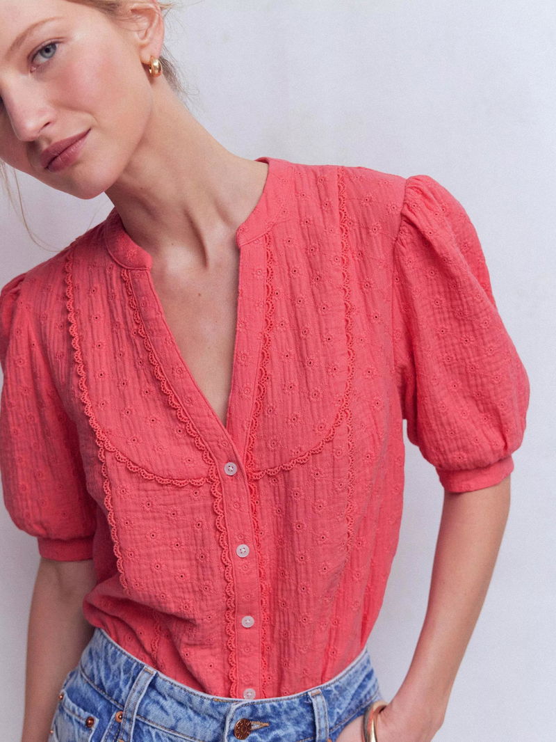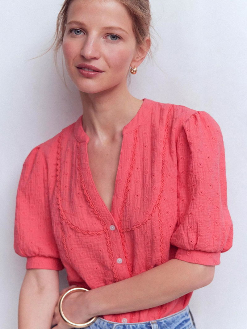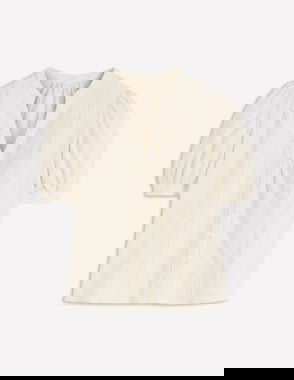 Double cloth cotton has a light, cool feel. Perfect for this floaty textured top. Tuck it into your favourite jeans and make even running errands look elegant.