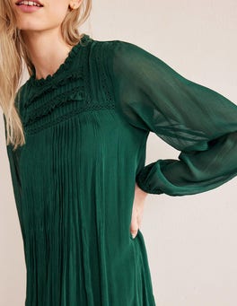 The lace-trimmed yoke on this georgette mini dress anchors the swingy (read: comfortable) silhouette. We like how the hem dances above the knee, making it easy to style for day with boots or trainers.