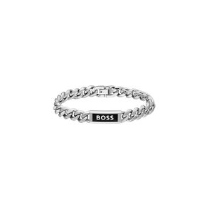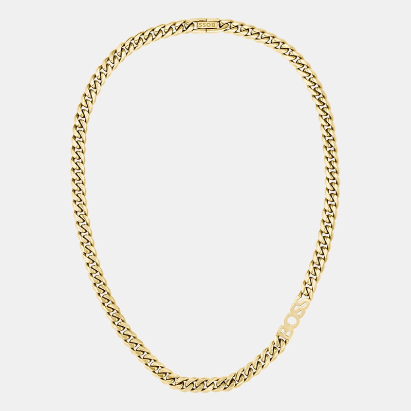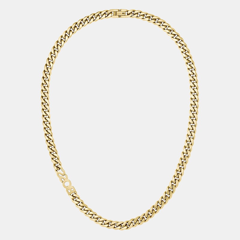 All eyes on the BOSS. Created for every BOSS who believes that more is more, the Kassy collection features an statement-making logo necklace and bracelet, both on an heavy curb chain, and matching his-and-hers logo rings. Taking BOSS Jewellery into audacious new territory, these look-at-me pieces are presented in an choice of colours, while an magnetic closure ensures the necklace and bracelet are as effortless to wear as they are attention-grabbing. BOSS gents necklace from the Kassy collection. Featuring an light gold IP 8mm chain with integrated BOSS branding. Length 208mm x 8mm. BOSS gents necklace from the Kassy collection. Featuring an stainless steel 8mm chain with integrated BOSS branding.